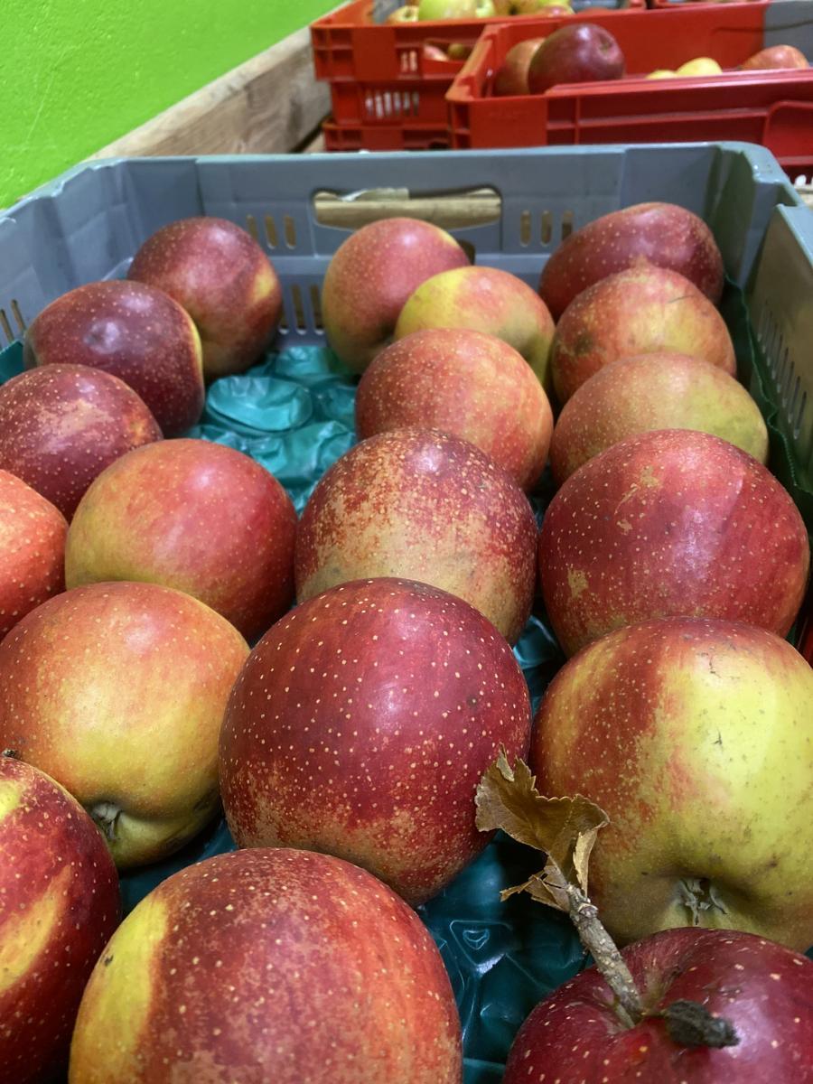 Variété douce, croquante, juteuse, excellente en tarte ou à croquer.Type "Boskoop" mais plus sucrée